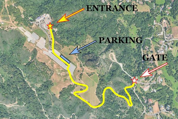 3. Proceed up the road and park anywhere in lower lot for load in.