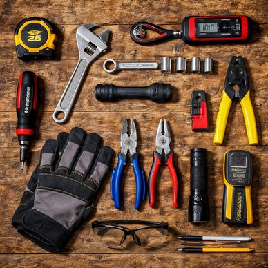 Steel toe safety shoes and safety glasses (if you normally wear glasses are strongly recommended and are the responsibility of the technician.